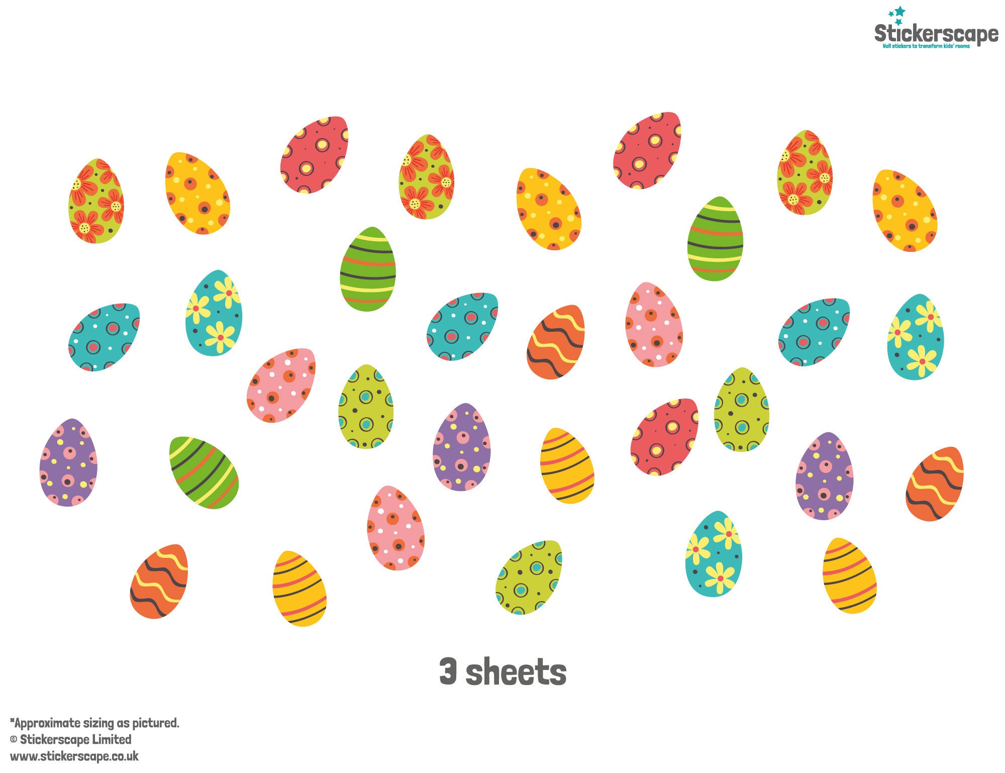 Each Easter Egg window sticker measures 6cm x 9.5cm. There are 11 window stickers per sheet.