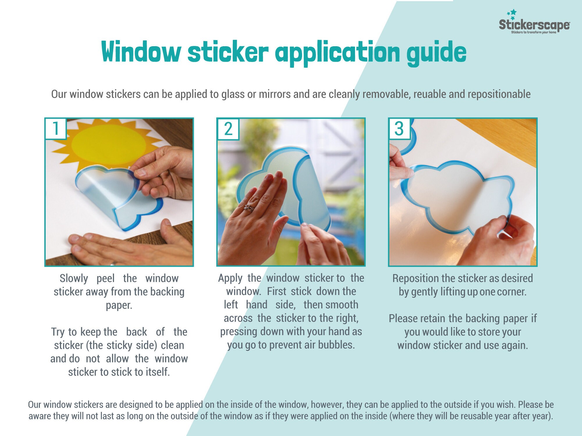Stickerscape's window stickers are made in the UK from the highest quality, ultra-thin removable and reusable vinyl. Full application instructions are included. All of our window stickers are repositionable, removable, and reusable year after year. Simply grab the backing to safely store them for next year.