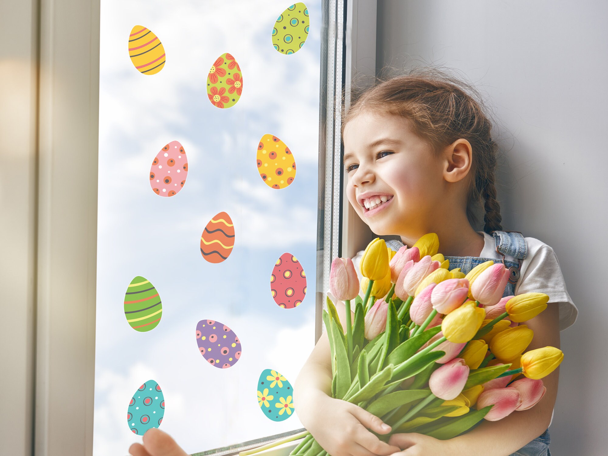 Our colorful Easter Egg window stickers are the perfect way to decorate your windows for the spring this Easter. Designed for children's bedrooms, playrooms or even around the house, this egg-themed window sticker set features eggs in different colors and styles.