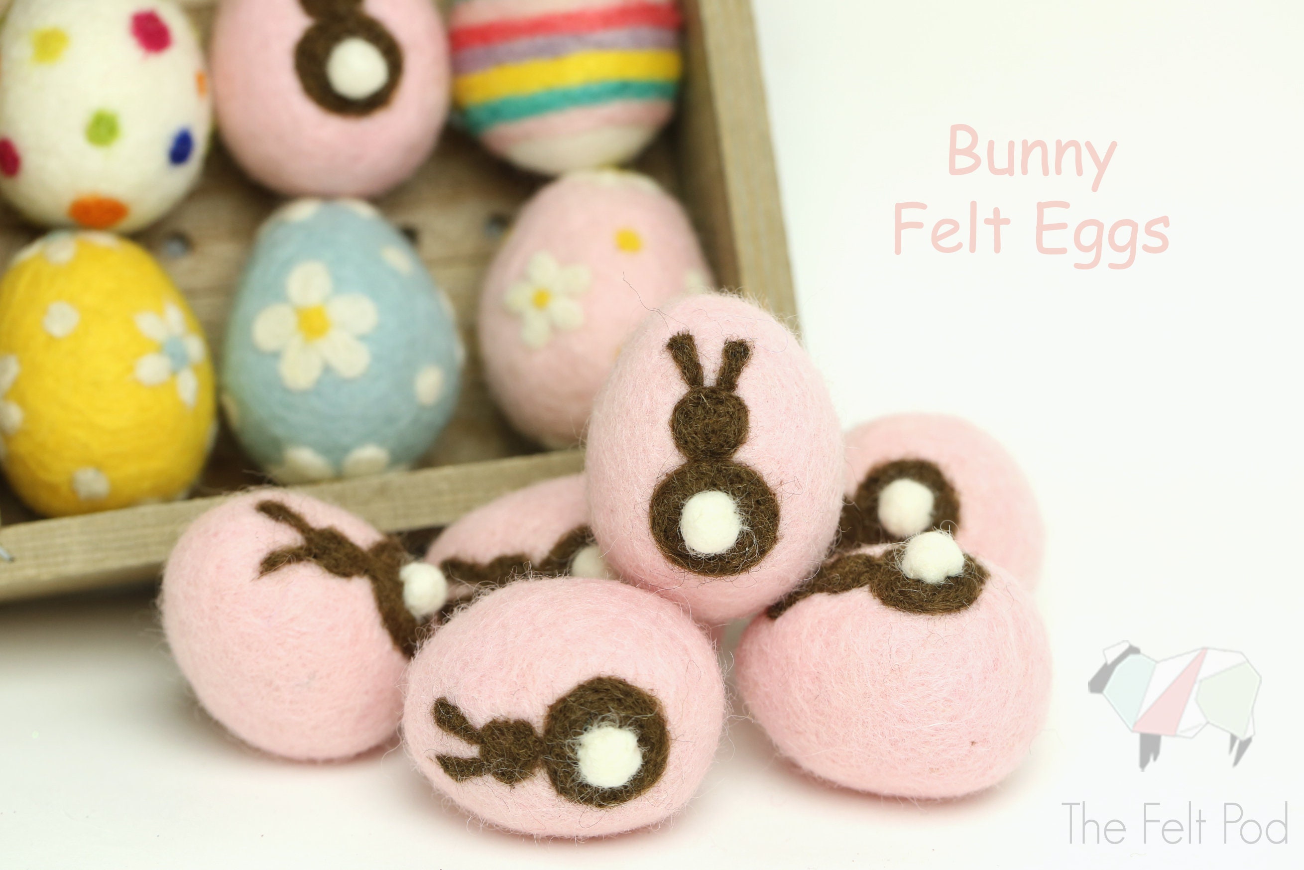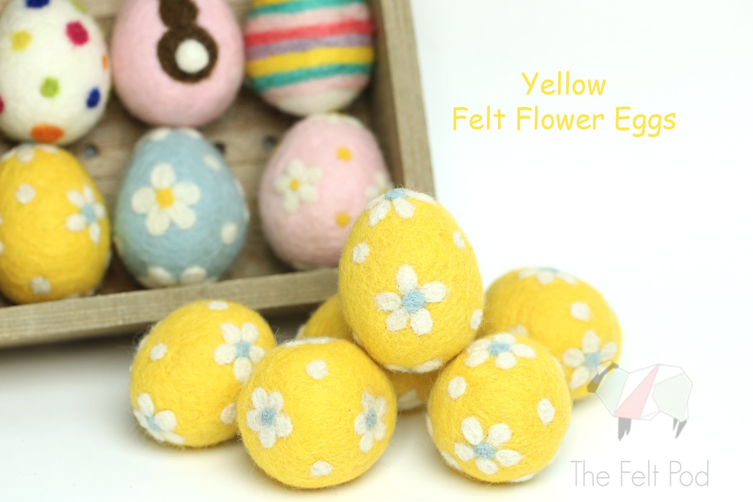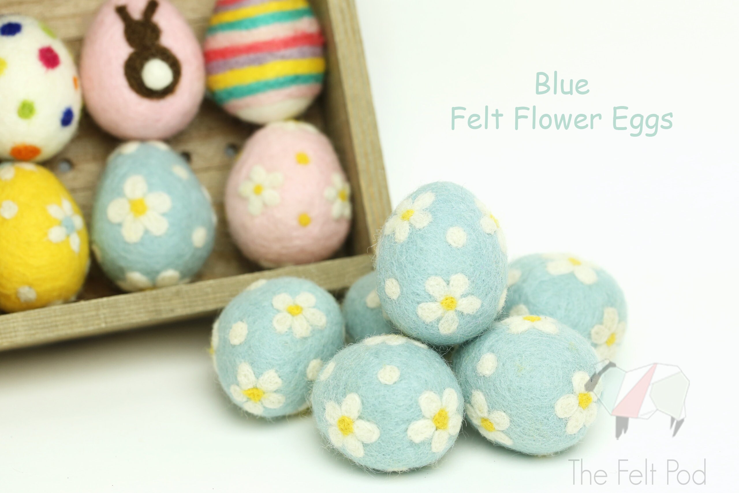 ** Felt eggs do not match the color of our 100% wool felt sheets, rolls, ribbons.