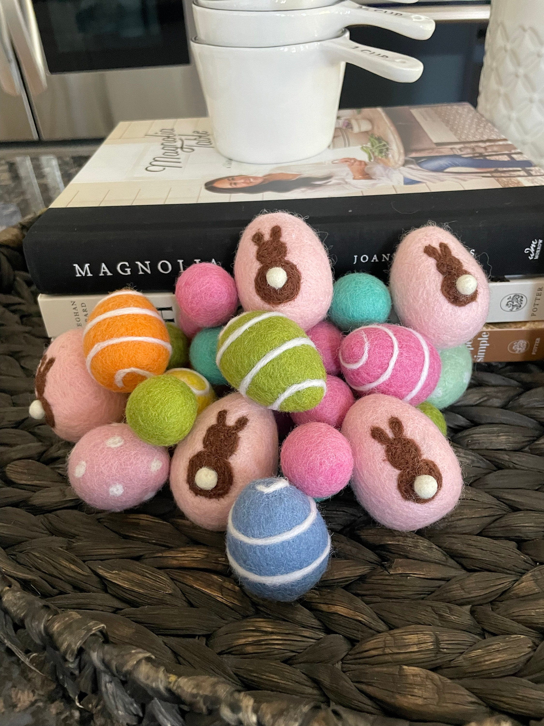 Celebrate Easter with these charming felt Easter eggs! Handmade using the needle felting technique, these brightly colored felt eggs are the perfect addition to your Easter decorations or as part of a festive Easter egg hunt. Made from soft wool, these felt eggs can be used as delightful bowl fillers, bringing a warm and handmade feel to any Easter celebration. String them together to create a whimsical Easter wreath, or use them as Waldorf toys for imaginative play. Not only are these food-inspired felt Easter eggs perfect for decoration, they make unique and thoughtful Easter basket gifts. Add these colorful felt Easter eggs to your holiday traditions for endless fun and festive charm! Cats will love using them as felt cat toys, too!