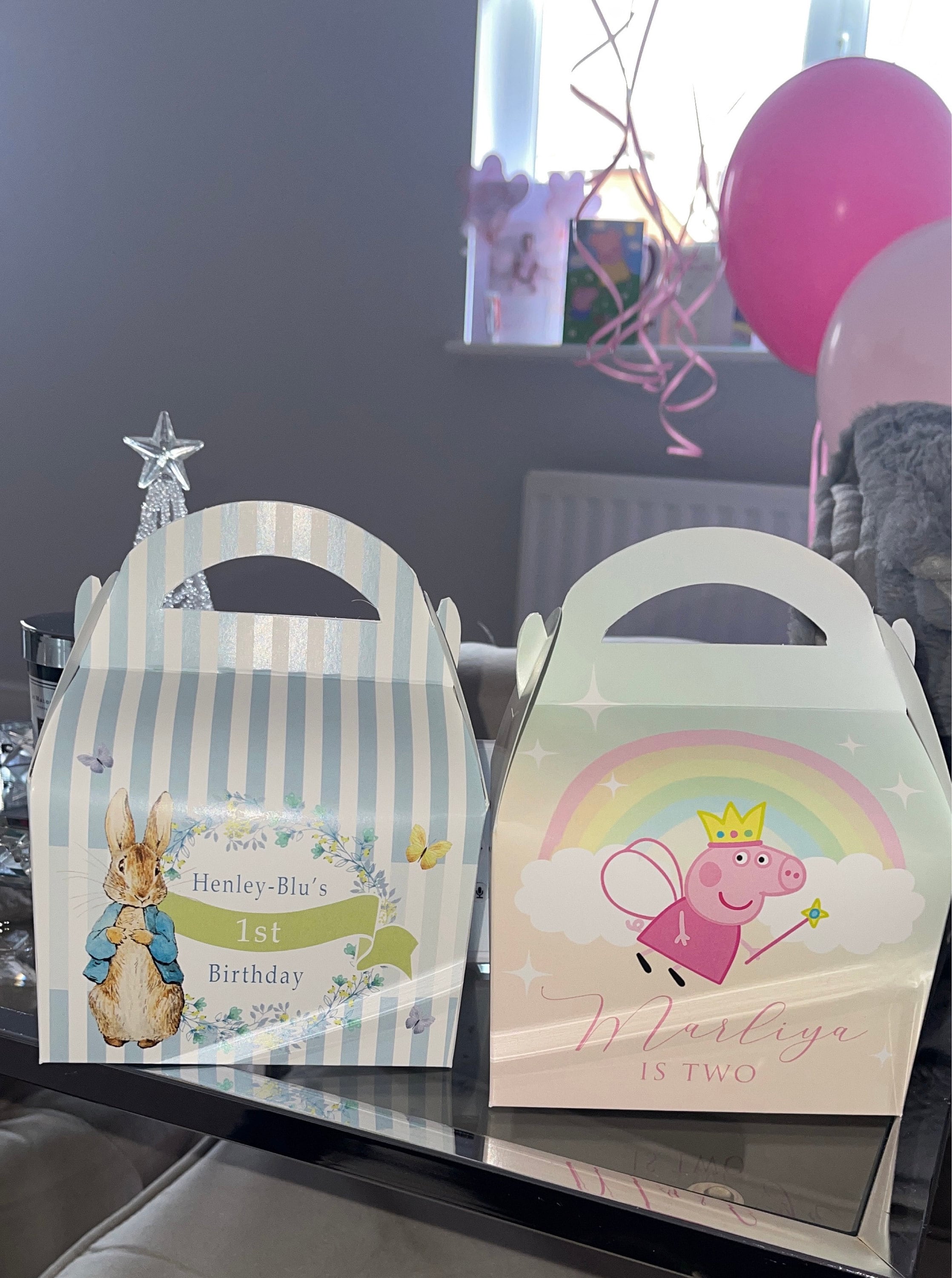 These colourful and fun personalised party favor boxes are the perfect addition to your child's birthday party. They come in a variety of designs to reflect your child's personality and complement your chosen party theme.