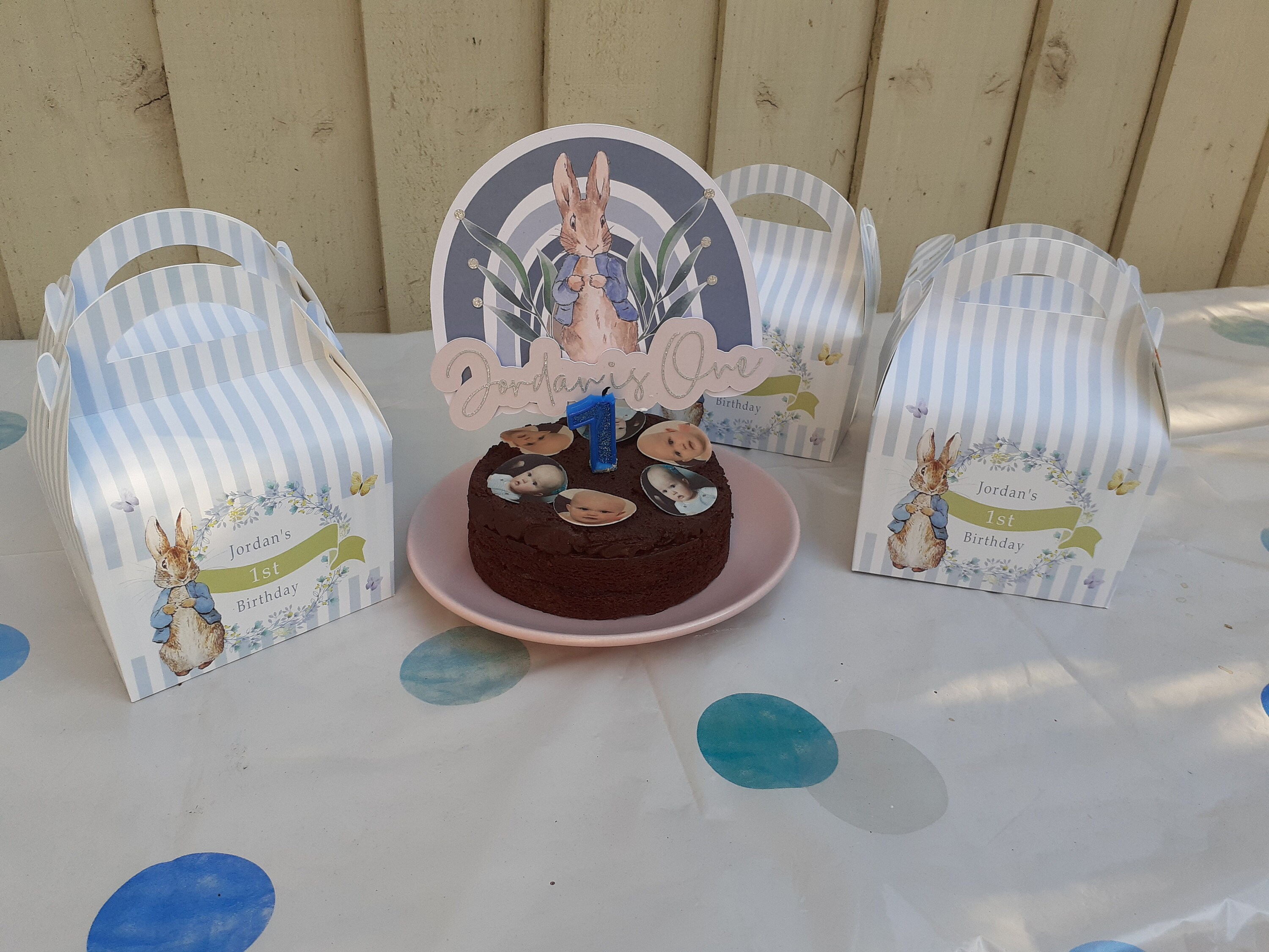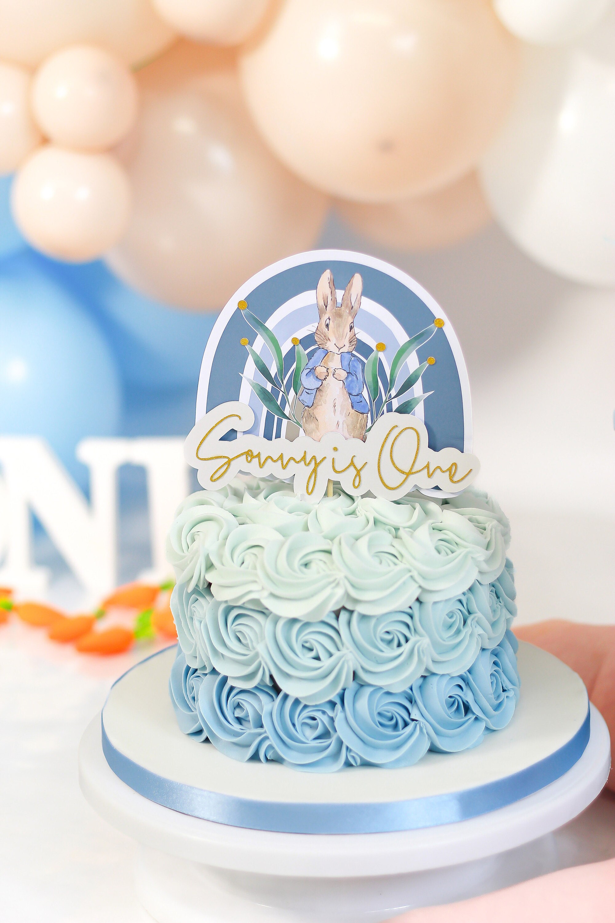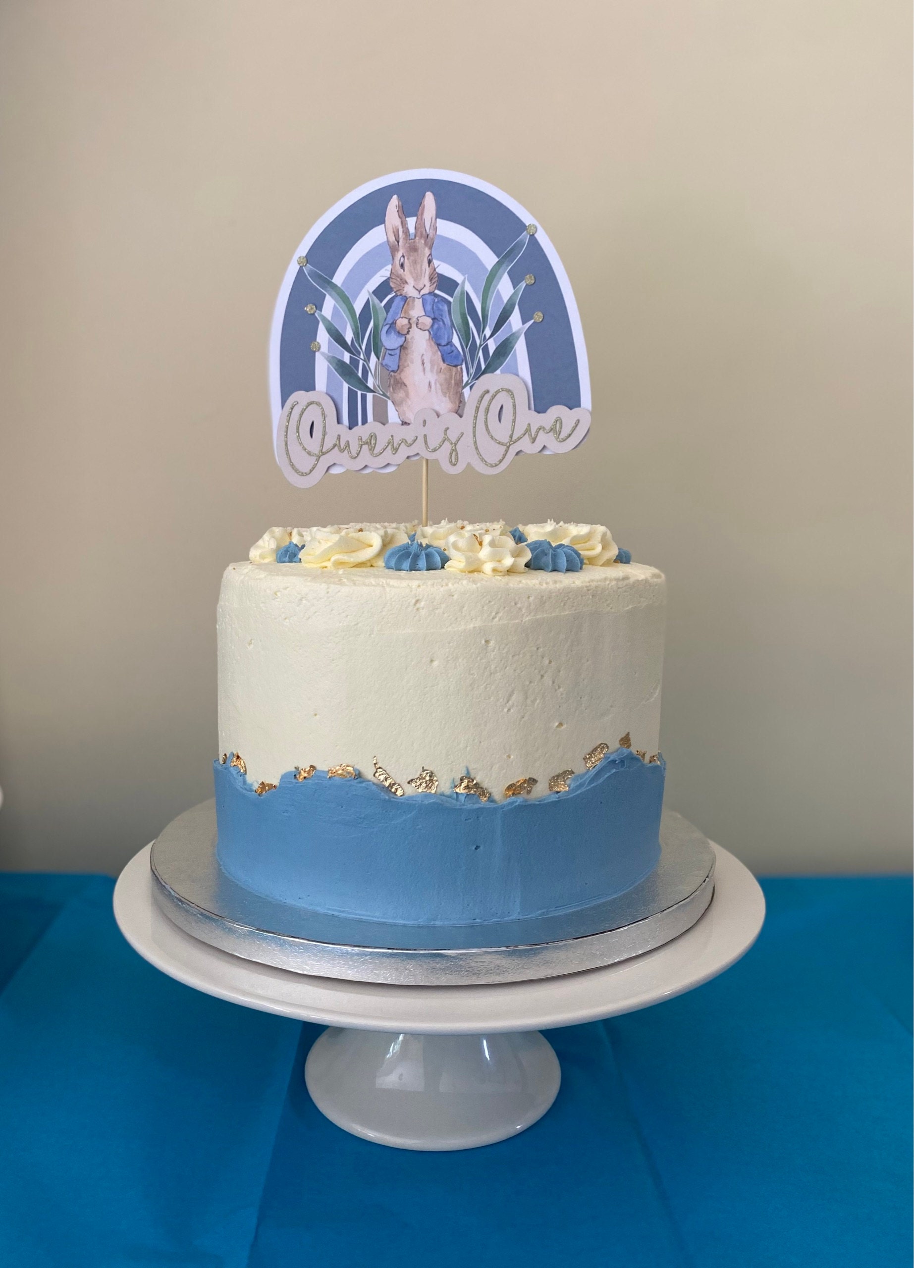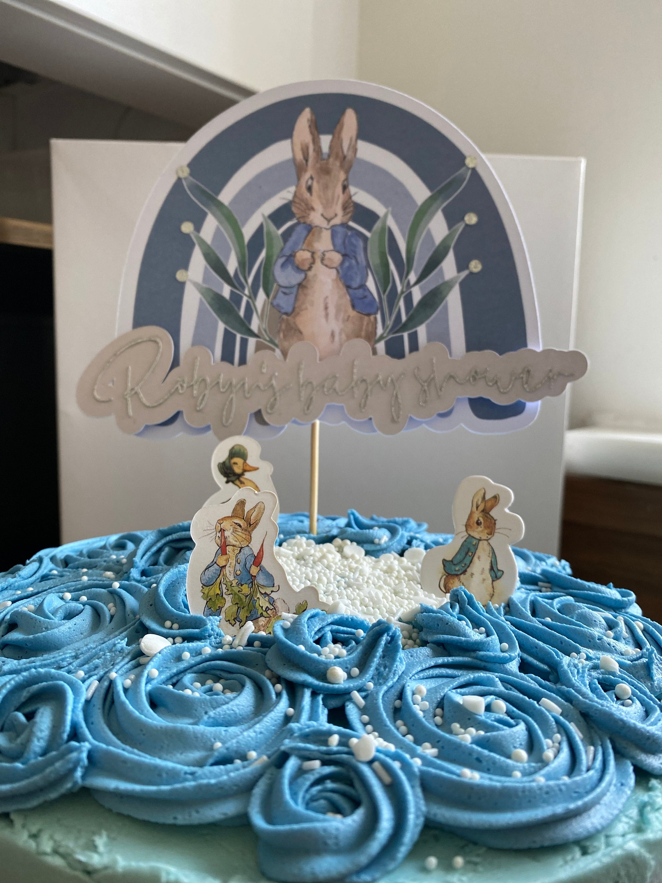 Peter Rabbit name topper, comes with a stick to insert directly into the cake