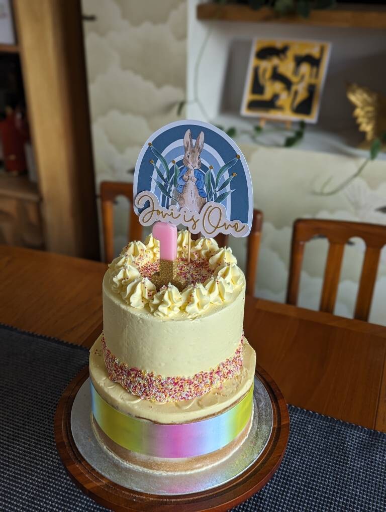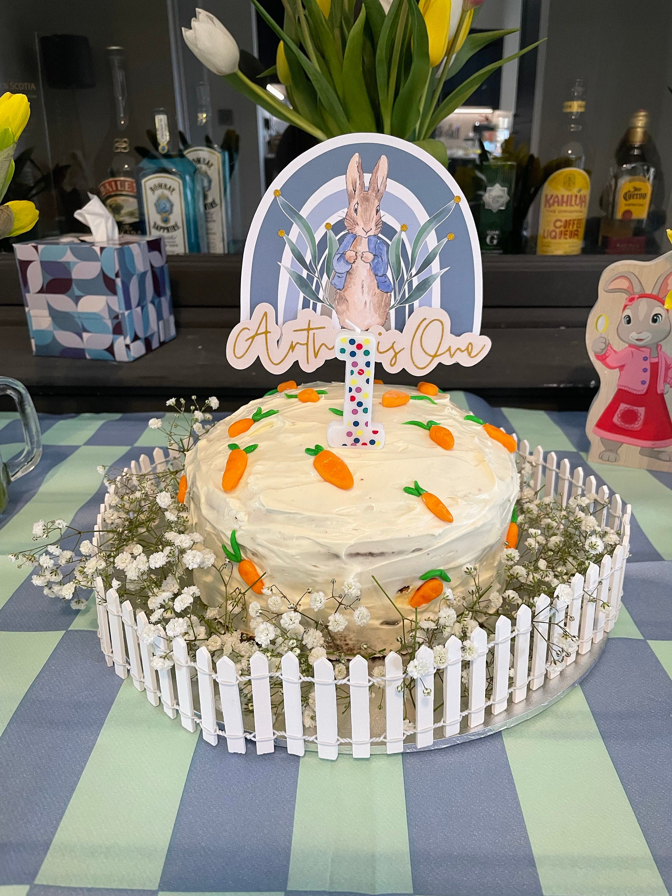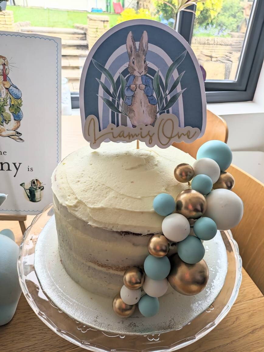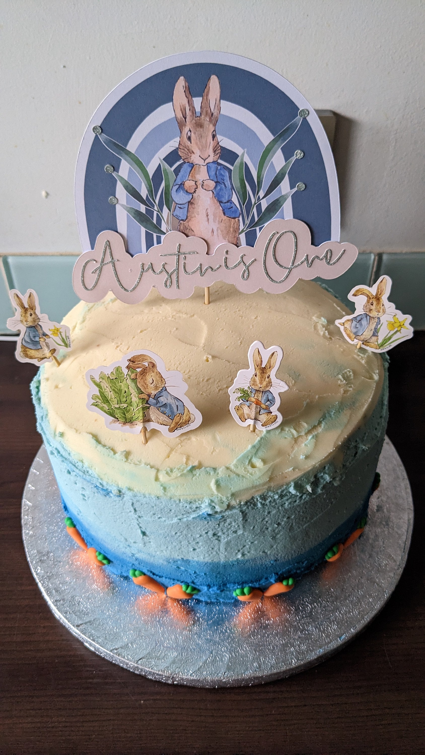 Peter Rabbit name topper, comes with a stick to insert directly into the cake