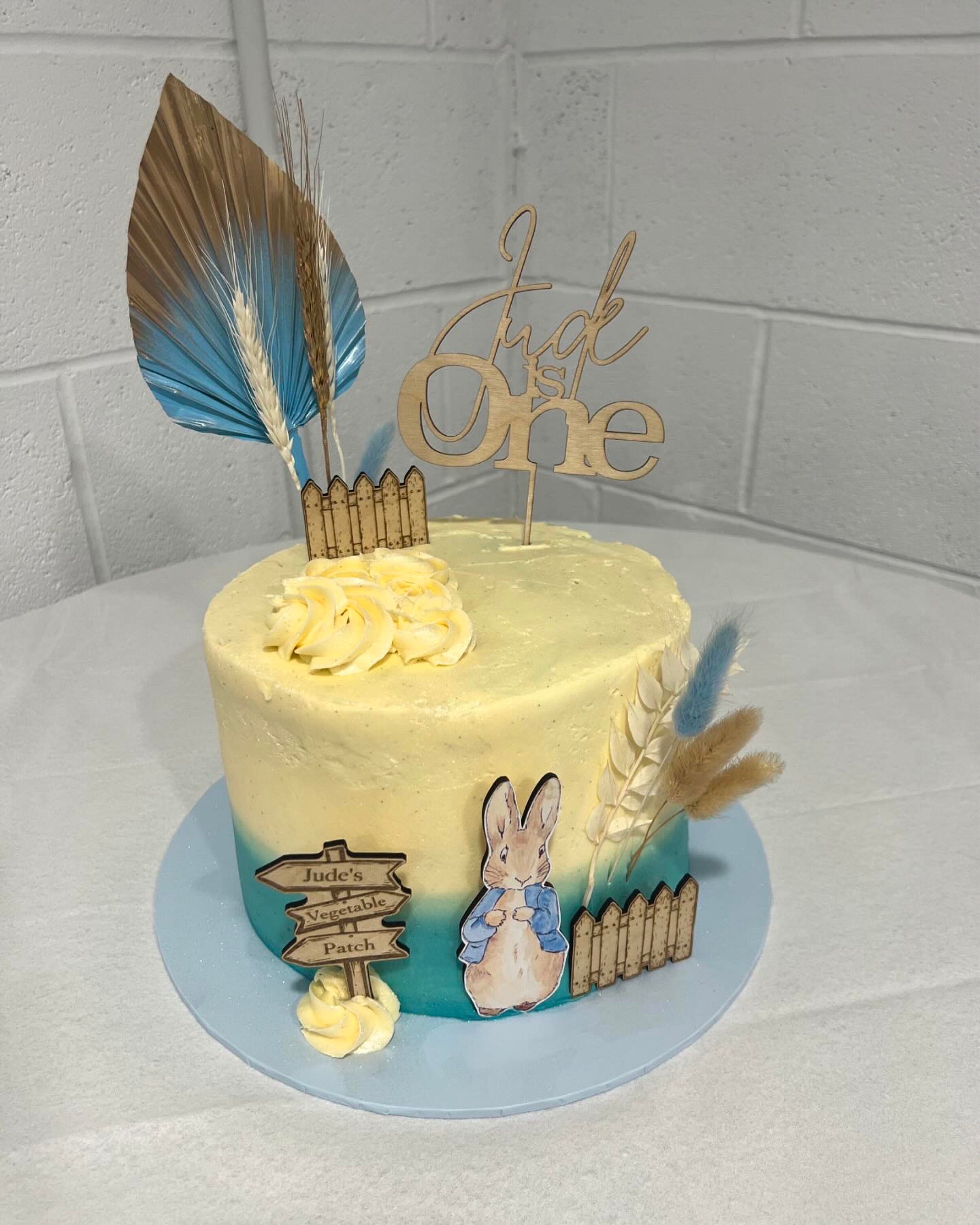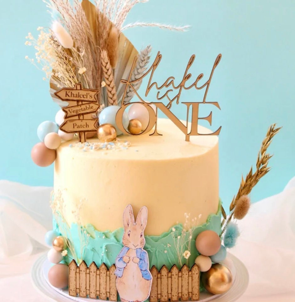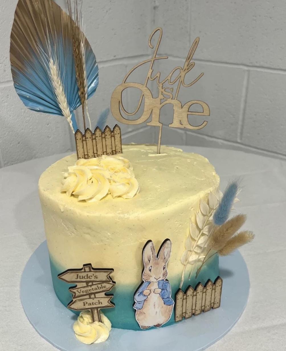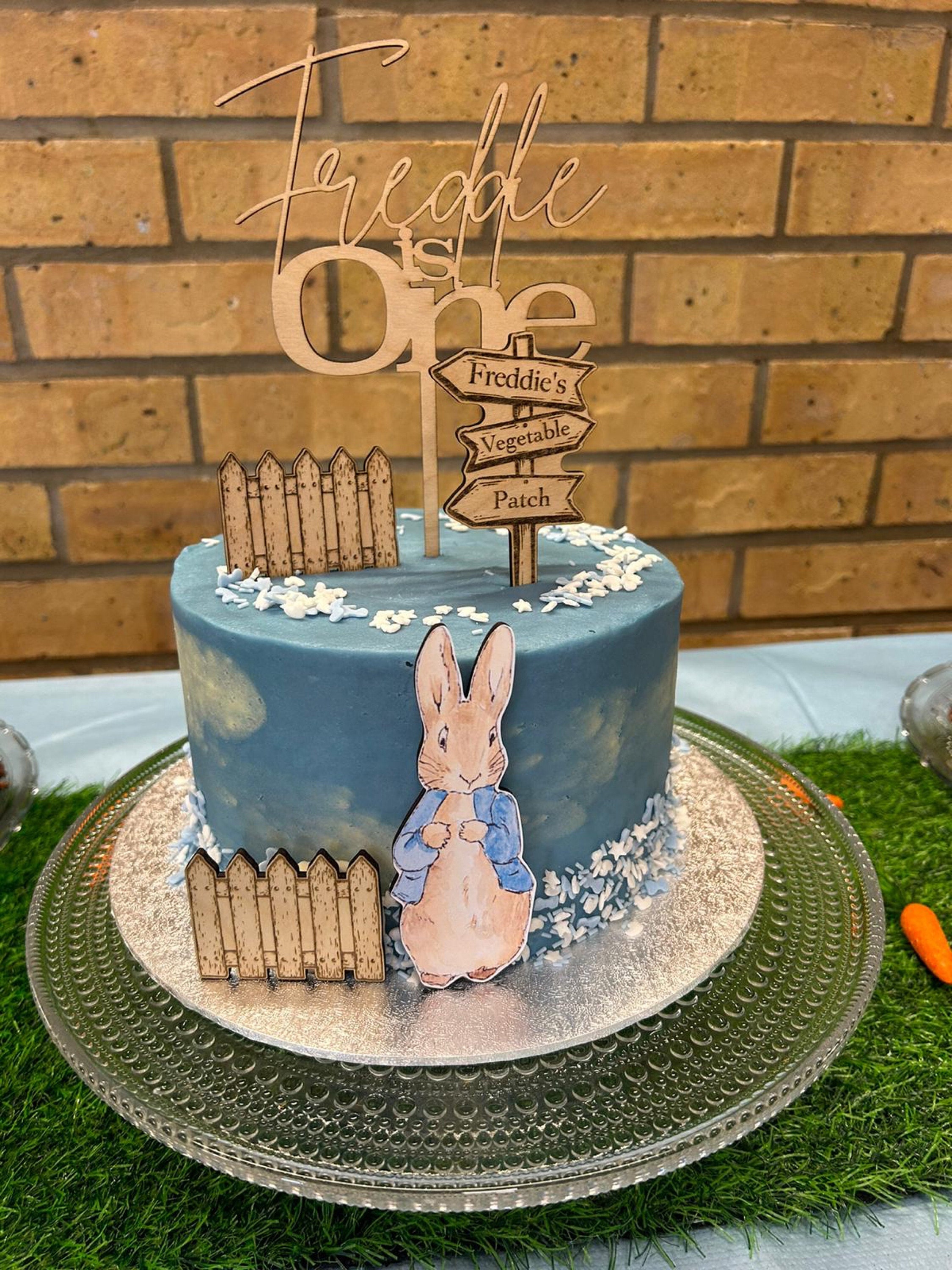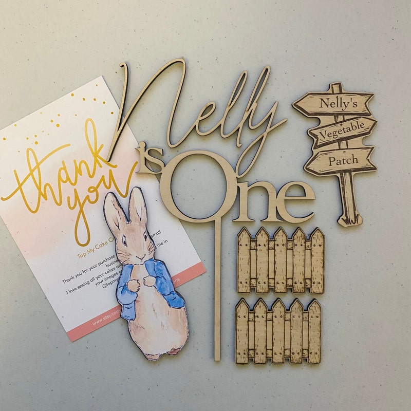 Handmade custom wooden Peter Rabbit cake topper bundle