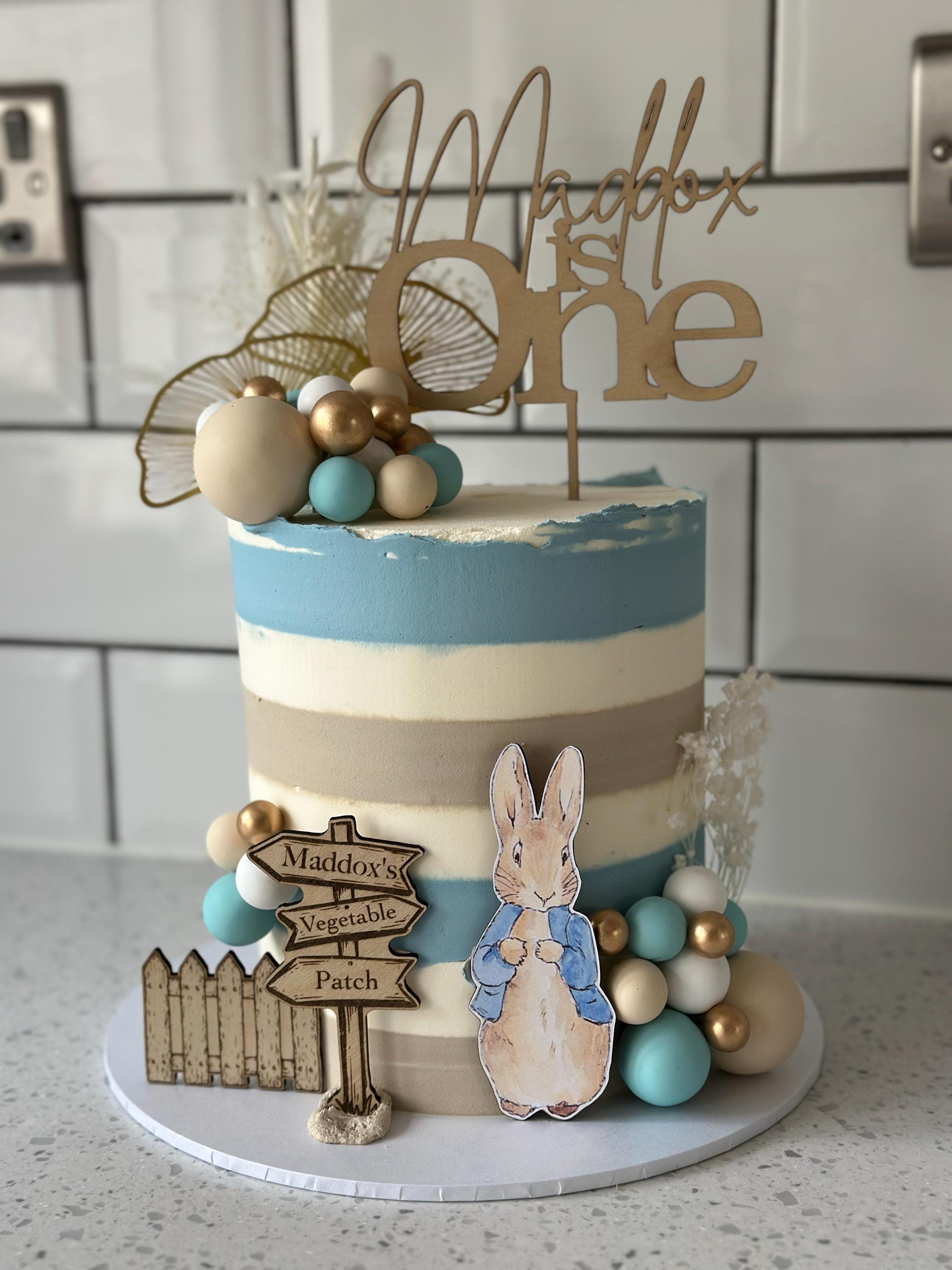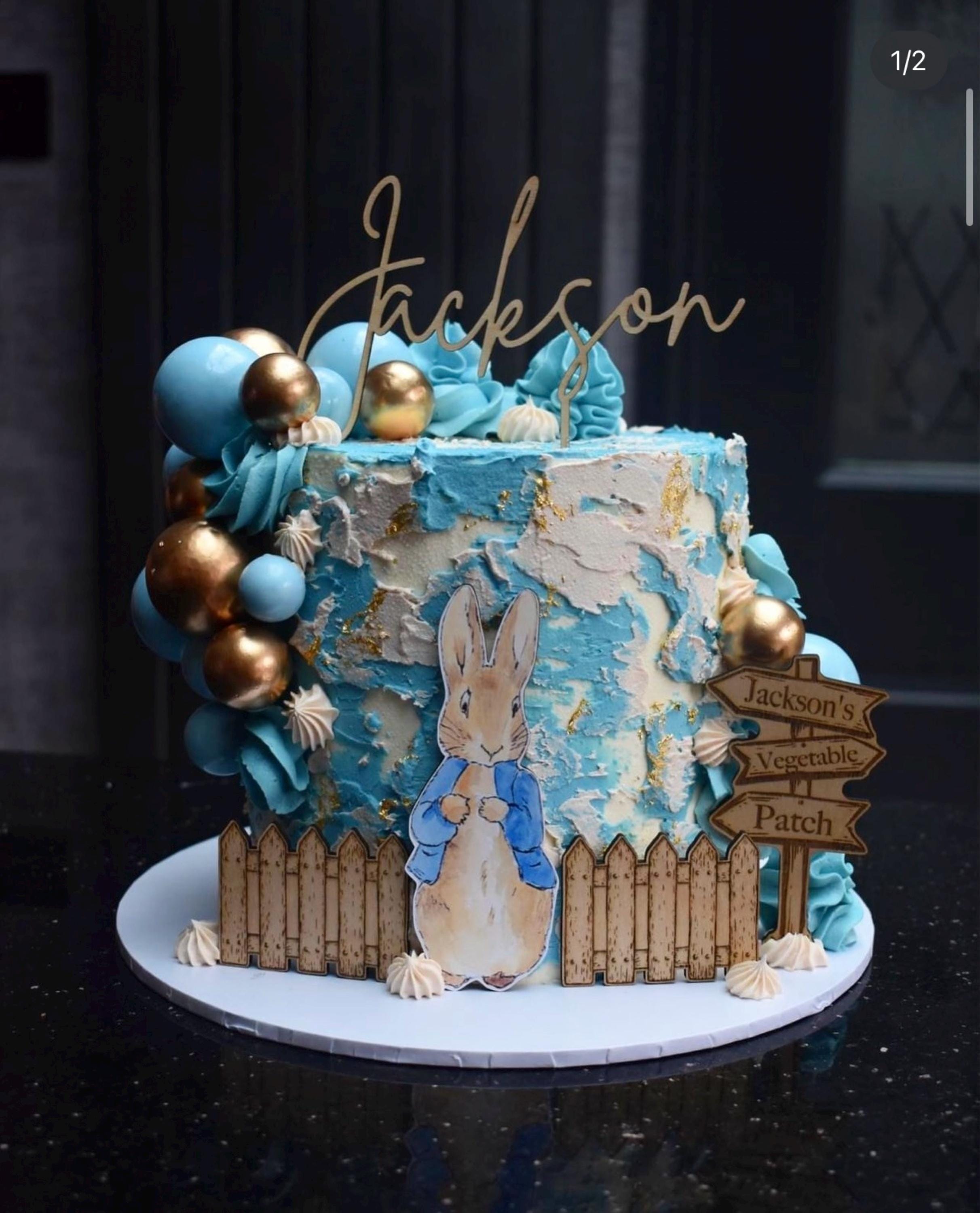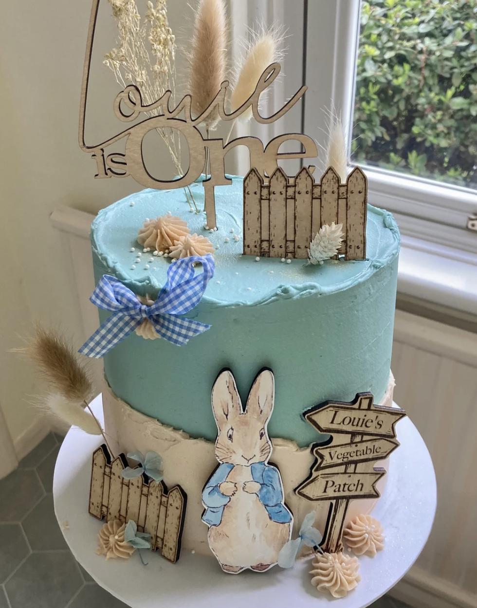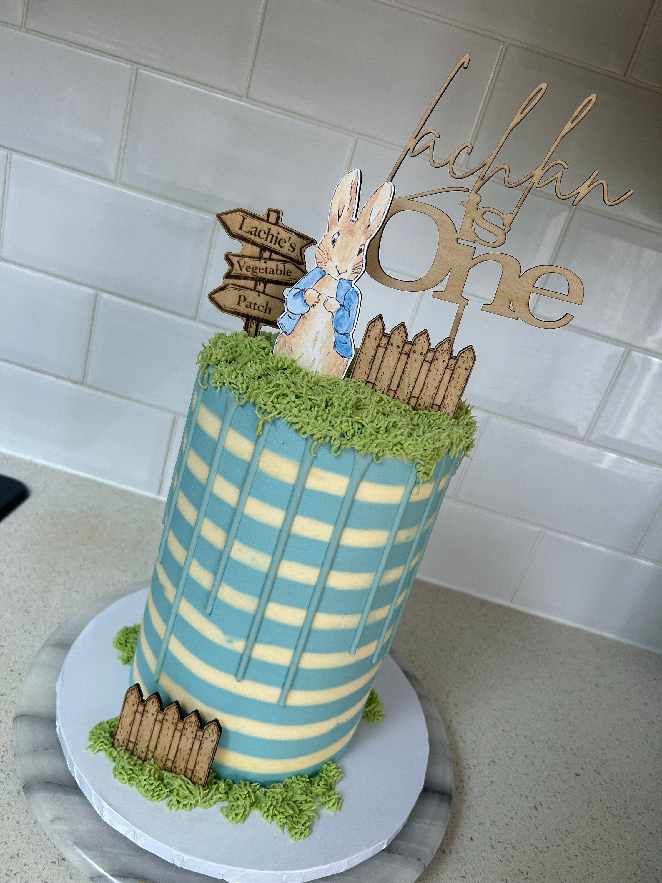 Handmade custom wooden Peter Rabbit cake topper bundle