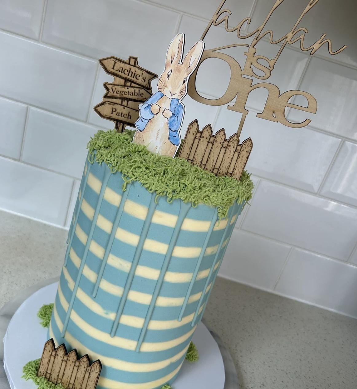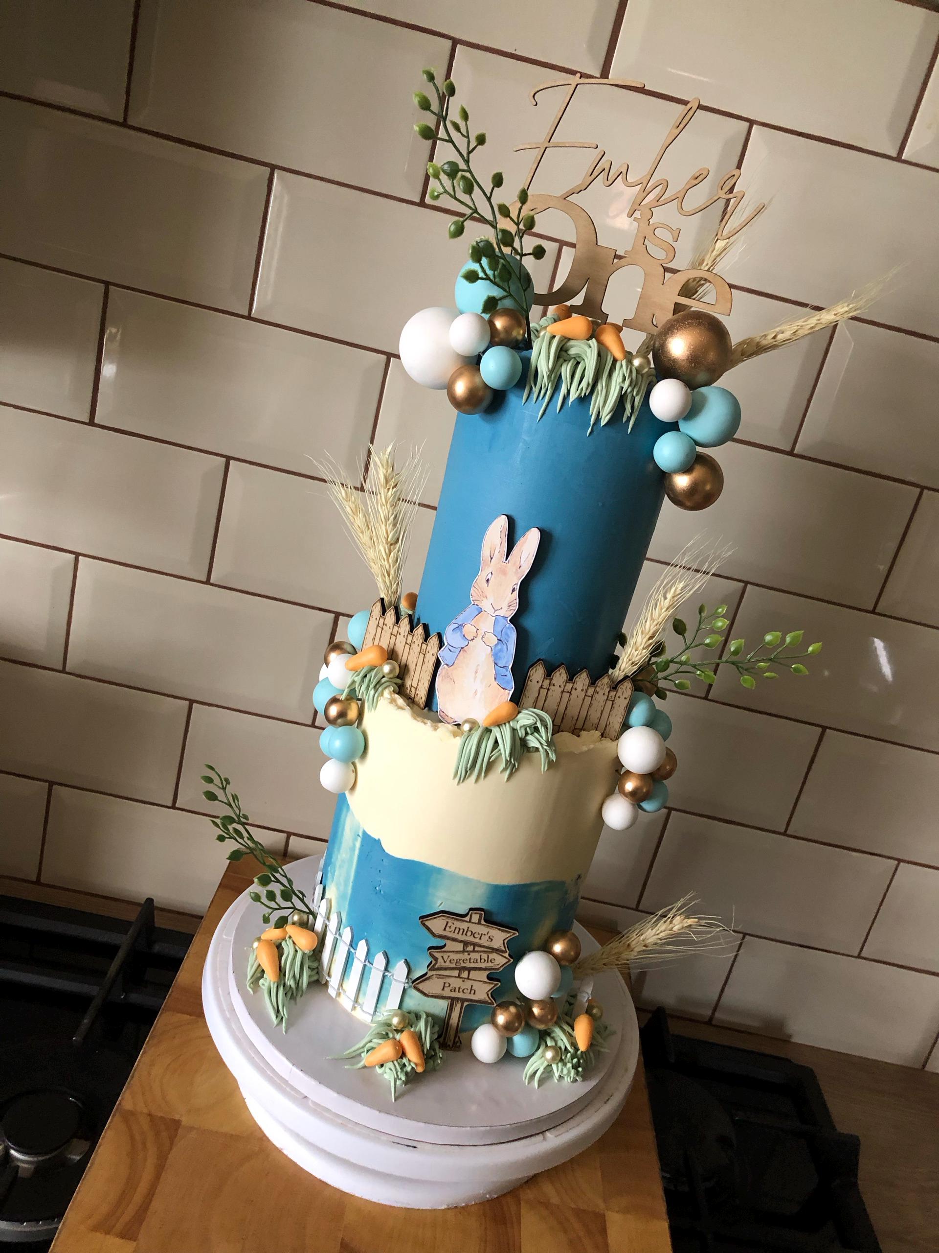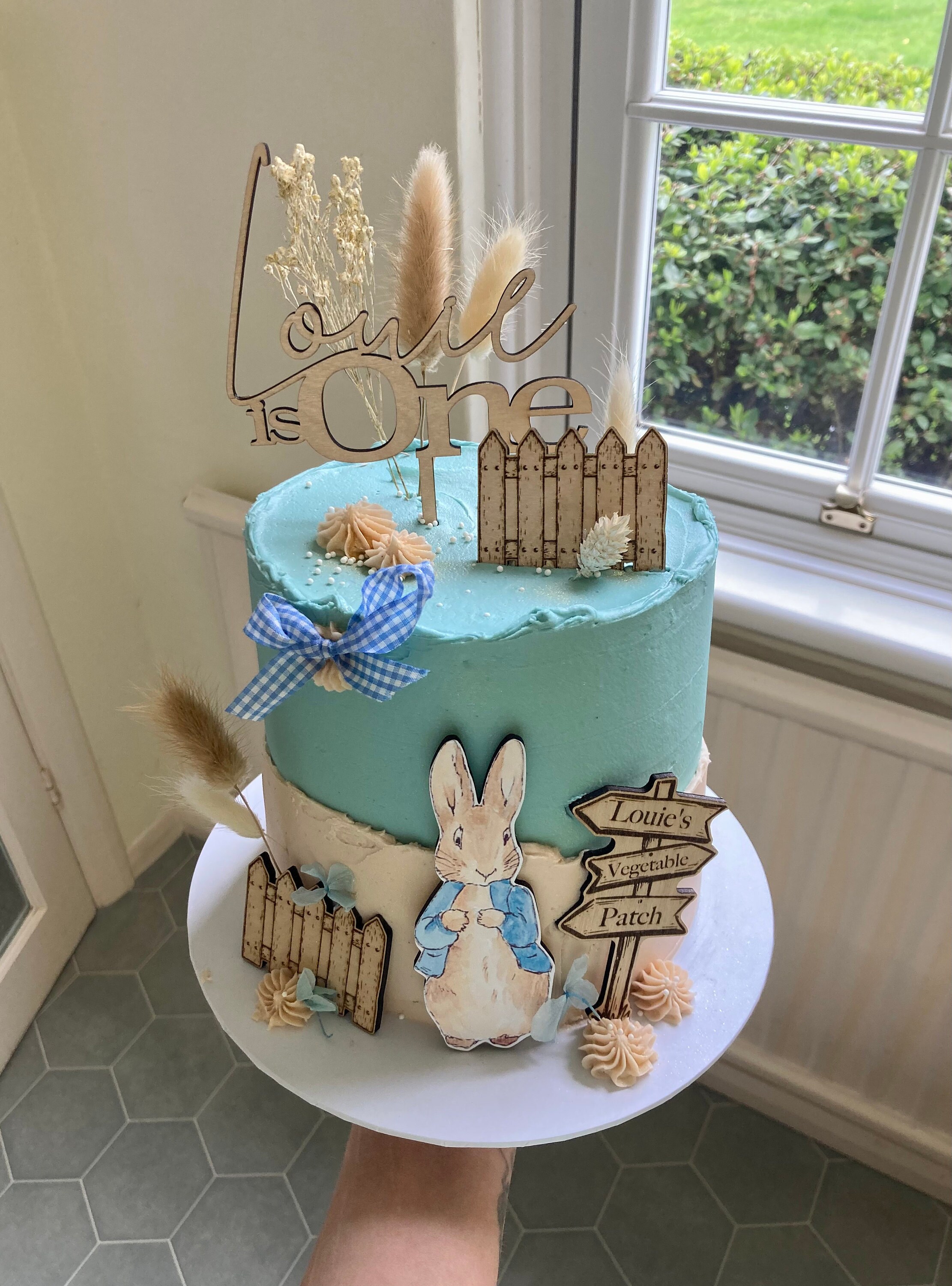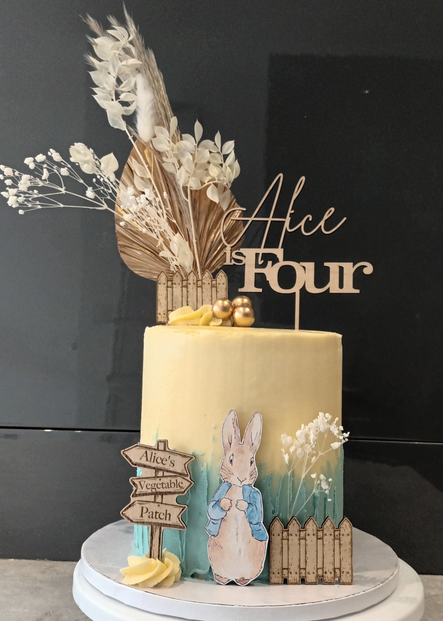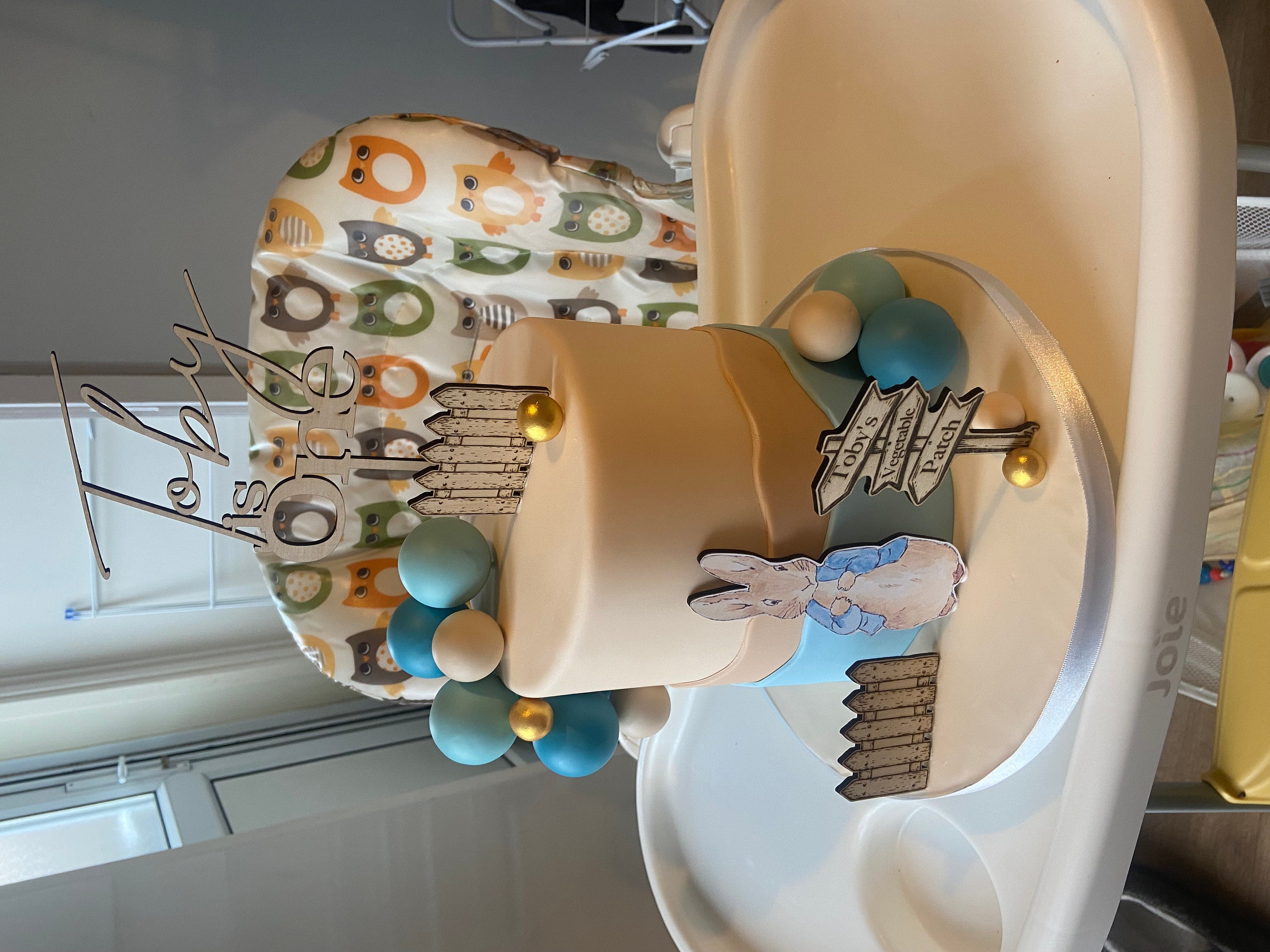 Handmade custom wooden Peter Rabbit cake topper bundle