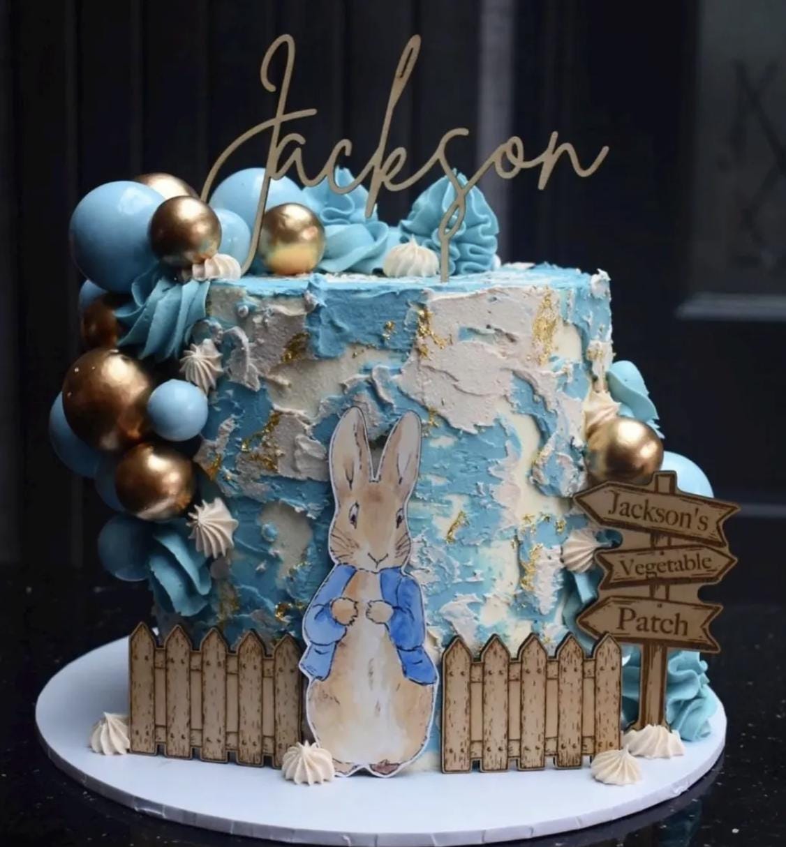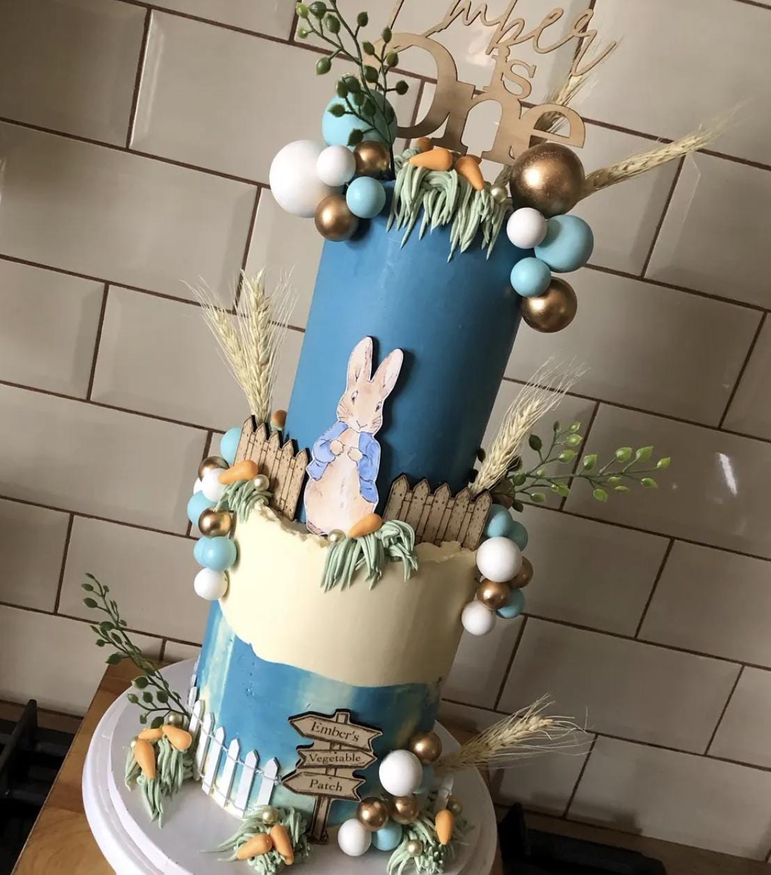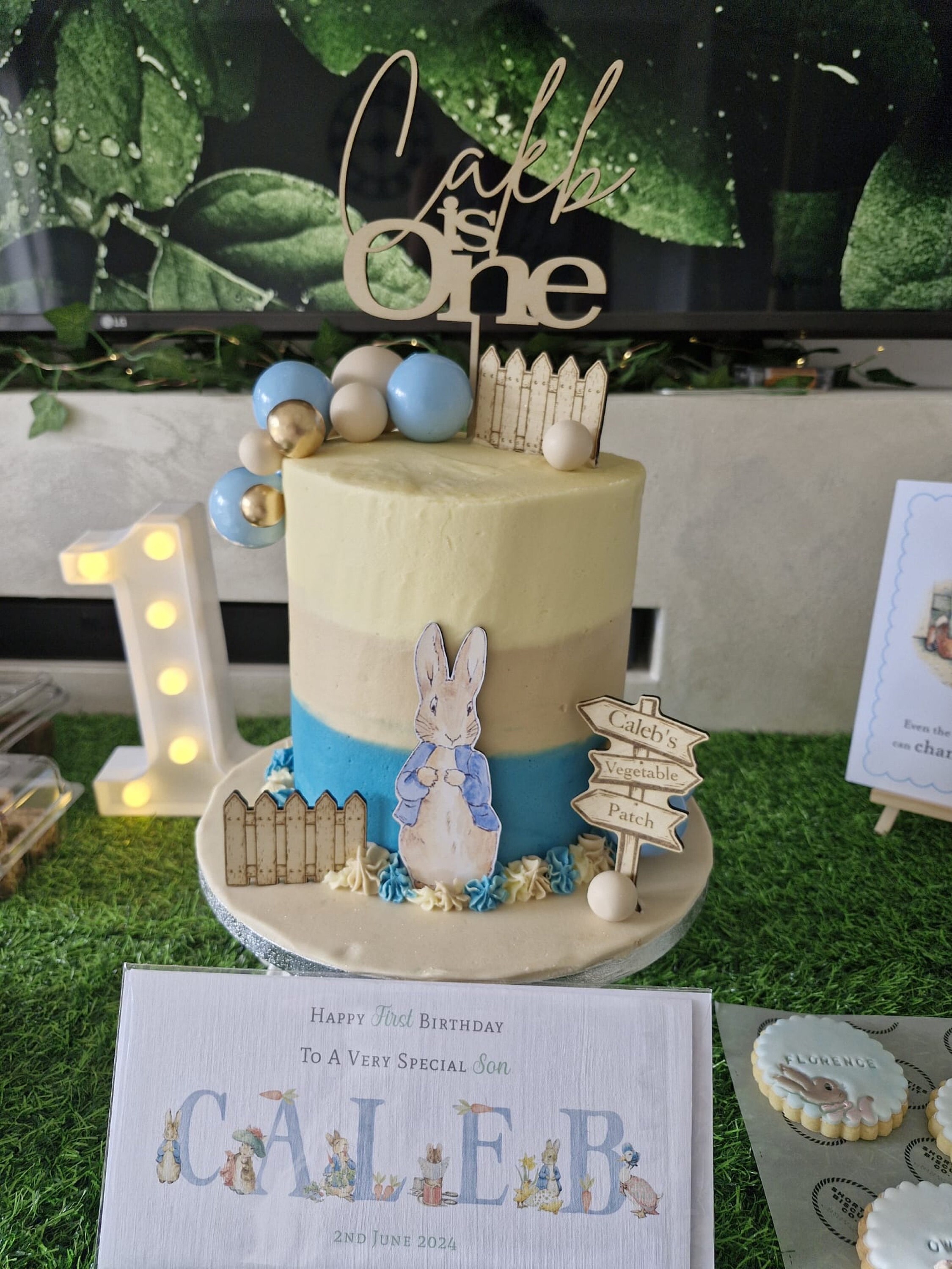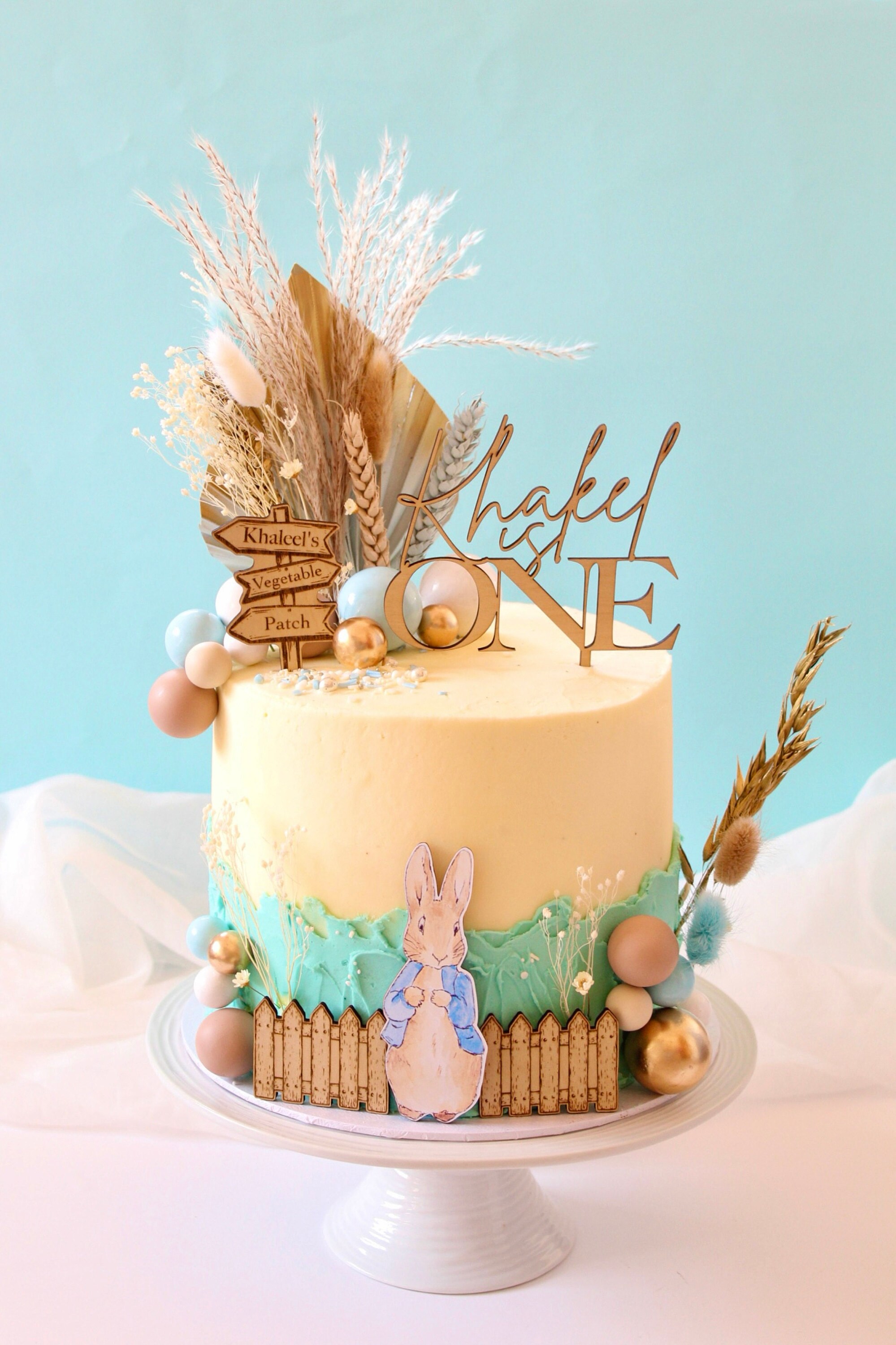 Handmade custom wooden Peter Rabbit cake topper bundle